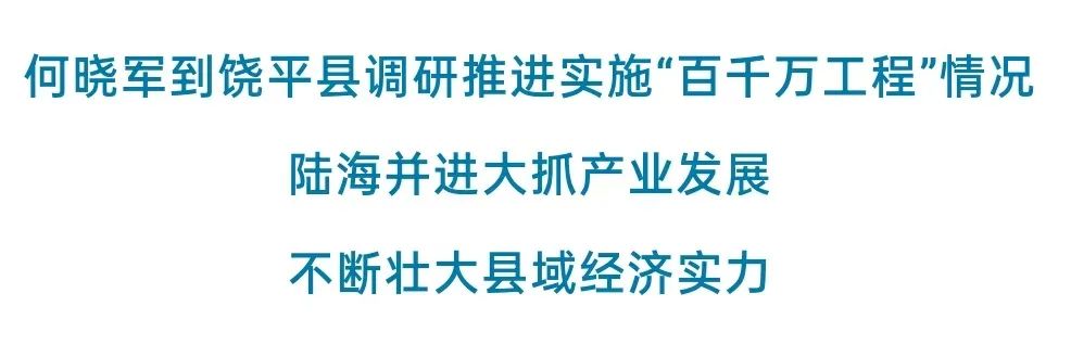 5月9日,市委书记何晓军到饶平县调研推进实施“百千万工程”情况,强调要深入学习贯彻习近平总书记对广东系列重要讲话和重要指示精神,贯彻落实省委“1310”具体部署,坚持强龙头、重创新、建集群,陆海并进大抓产业发展,不断壮大县域经济实力,努力打造潮州高质量发展新增长极。